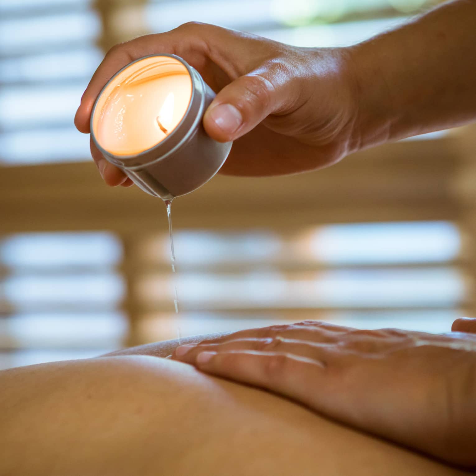 Este ritual de luz, se realiza con exquisitos aceites termales que al fundirse al calor de una vela se dejan caer suavemente sobre la piel, creando una sensación cálida y única